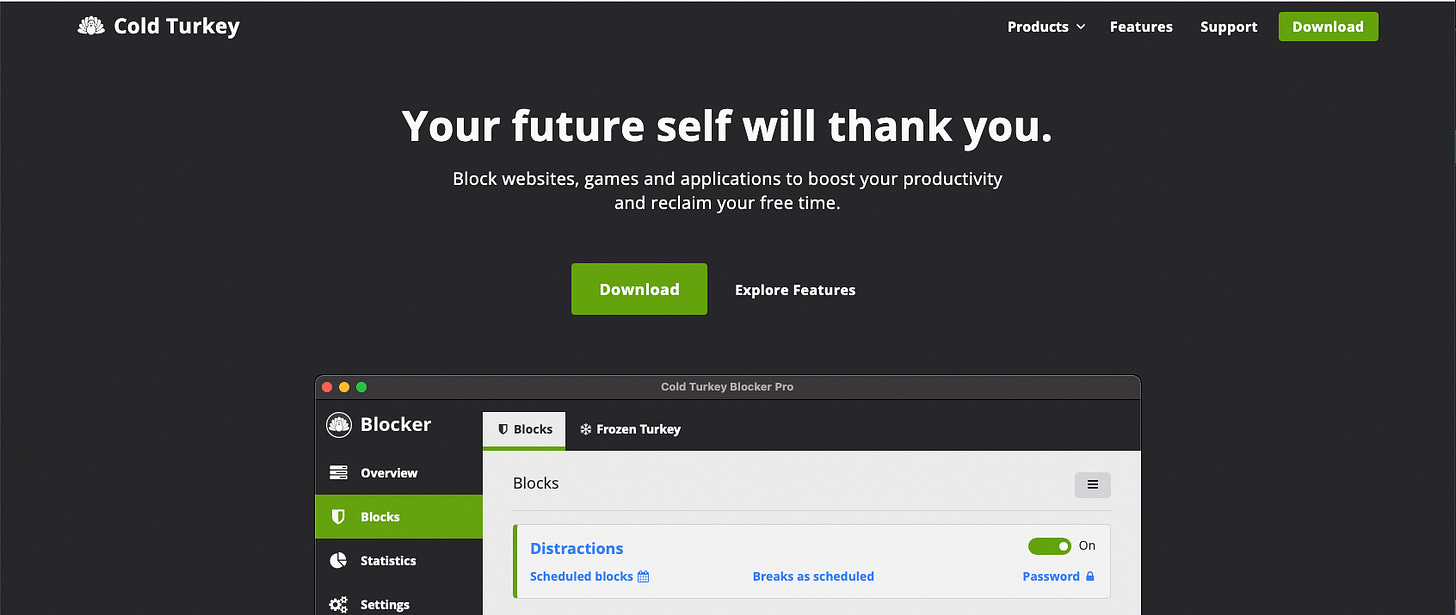 Therefore when I work, I usually enable an app called Cold Turkey that blocks all these websites.