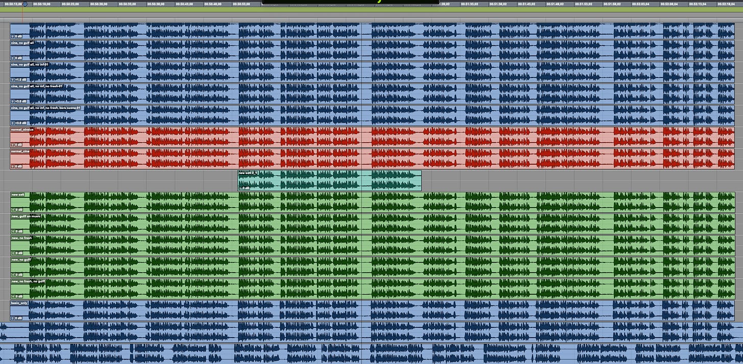 I've also been playing with my templates; both for dialogues and scoring. After exporting 15 different versions of a mix, I asked Paulina to sit down, listen and let me know which one was the best.